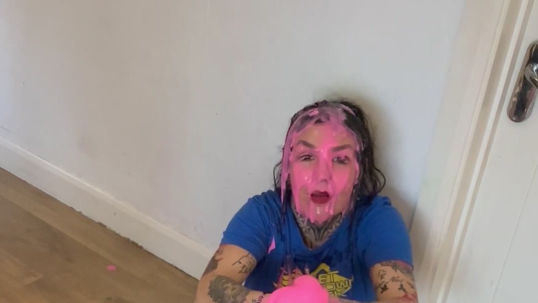 But unfortunately she was a no show, so I had to do it by myself! After getting my face and hair covered In pink gunge. I smother my feet and fill my socks with the left overs.