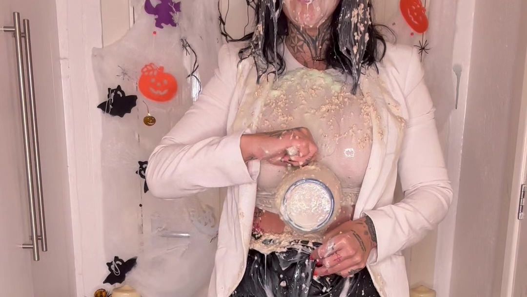I have been taking dares from my subs and my first one was to trash myself with porridge Which I did spectacularly and I put a spin on it s I did after a night out! So I was in my going out clothes! It felt weird and good all at the same time... I especially liked the feeling of the porridge gliding down my big tits and pussy.